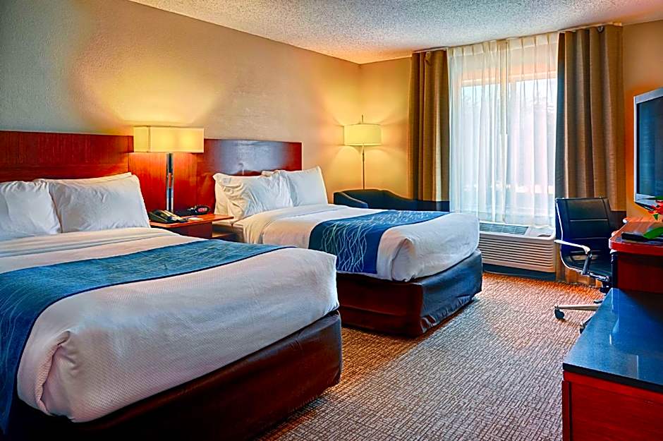 The Comfort Inn & Suites North Dallas-Addison offers various types of rooms. These include King Rooms, Queen Rooms with Two Queen Beds, King Suites with Sofa Bed, and Junior King Suites with Sofa Bed. All rooms are non-smoking, have a size of 291 sqft or 301 sqft, and can accommodate between 2 and 4 adults, with additional space for children. The King Rooms have 1 King size bed, while the Queen Rooms and Suites have either 2 Queen size beds or 1 King size bed and 1 Sofa Bed.
