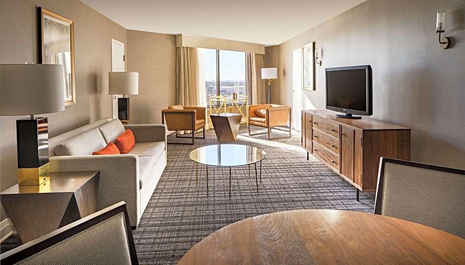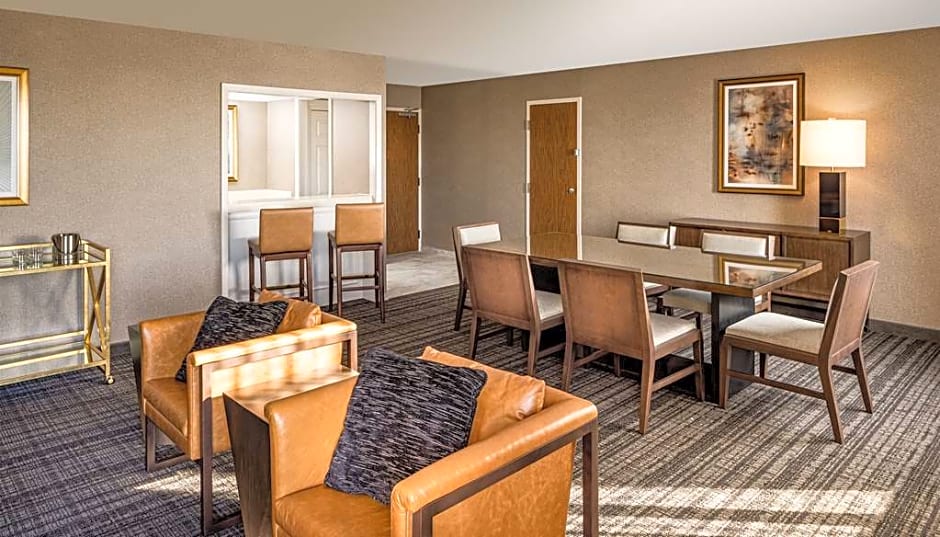 Desk, WiFi, separate living room, kitchen & dining area, two 42-inch TVs, mini-refrigerator Enjoy your stay in this spacious, one-bedroom suite with living room, kitchen and dining area. Relax on the sofa in the living area and watch a movie on one of the 42-inch TVs or listen to music on the clock radio with MP3 connection. Enjoy a meal in the dining area, just off the kitchen. Work comfortably at the desk with ergonomic chair, or check emails with complimentary WiFi access (upgrade to T1 access for a fee). Sink into the king-sized Sweet Dreams® bed and enjoy a restful night's sleep.