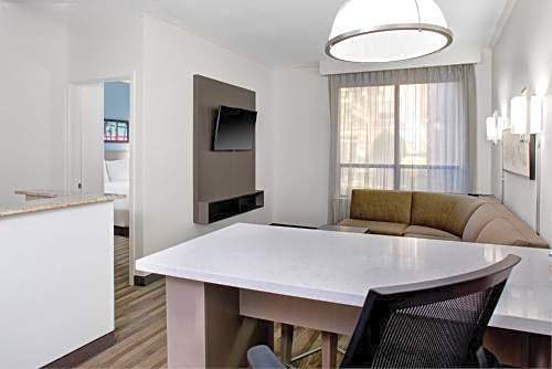 Spacious studio with ample electrical outlets and storage space. It is within walking distance of a grocery store, shopping areas, and several restaurants. There is easy access to public transportation and rideshare options. Appreciated the hot breakfast each morning and professional staff.