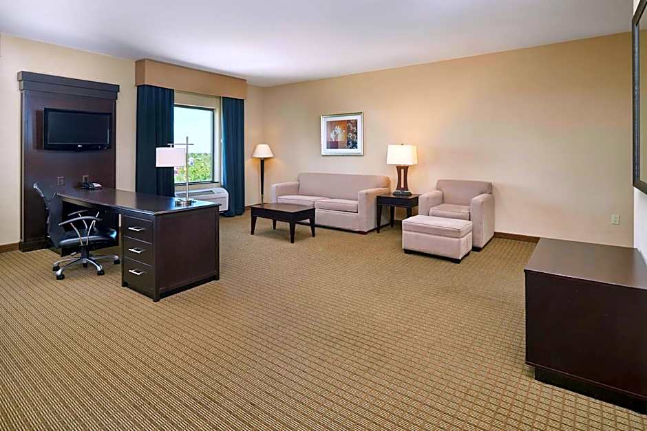 32-inch LCD HDTV, sofa bed, work space, coffeemaker, free WiFi Enjoy a comfortable stay in this spacious studio suite which features two clean and fresh Hampton beds®, a work space, a relaxing easy chair and a sofa bed. Work with ease at the expansive desk area and stay connected with free WiFi. The bathroom offers soft towels and a shower with a curved shower rod for added space and light when showering. A 32-inch LCD TV with HD channels and a coffeemaker are included for your convenience.