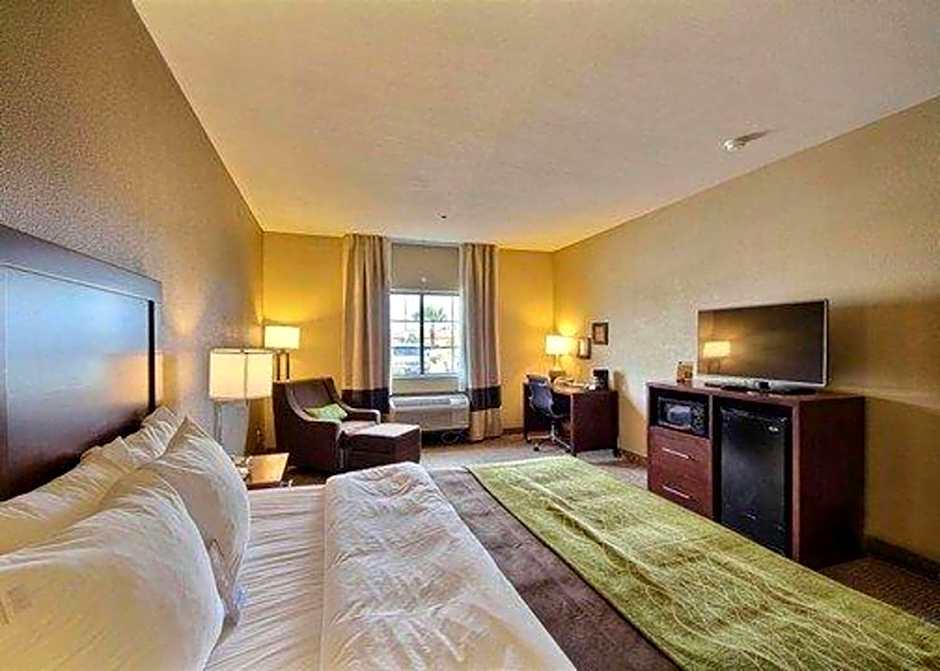 The Comfort Inn Edinburg South offers a variety of room types, including Queen Suites with Two Queen Beds, King Rooms, and Double Rooms with Two Double Beds. All rooms are non-smoking. The Queen Suites and King Suites have a room size of 301 sqft and can accommodate 4 adults and 3 children. The King Rooms and Double Rooms can accommodate 2 adults and 1 child, and the King Rooms also come in an accessible option.
