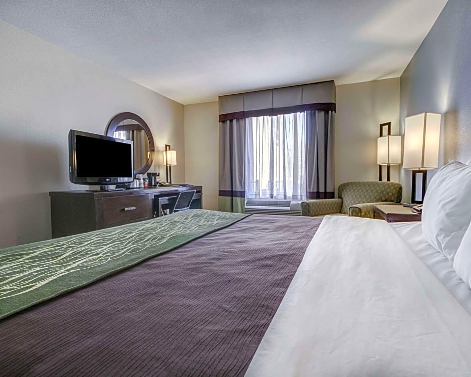 The Comfort Inn & Suites I-10 Airport offers a variety of room types including King Rooms with roll-in showers for disabled guests, Standard King Suites, Double Rooms with two double beds, Accessible King Rooms, and Non-Smoking King Rooms. The rooms range in size from 280 sqft to 312 sqft. Smoking is not allowed in any of the rooms. The occupancy of the rooms ranges from 2 adults and 1 child to 4 adults and 3 children, depending on the room type. Bed sizes vary with options including King size beds and Queen size beds.