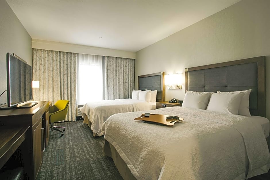 The Hampton Inn & Suites Dallas/Ft. Worth Airport South offers several types of rooms. They have Queen Rooms with two Queen beds, King Rooms, King Studios, Queen Studio Suites with two Queen beds, and a Family King Room. Smoking is not allowed in any of the rooms. The occupancy ranges from 2 adults and 1 child to 6 adults and 4 children, depending on the room type. Bed sizes offered are Queen and King, with some rooms also providing a sofa bed.