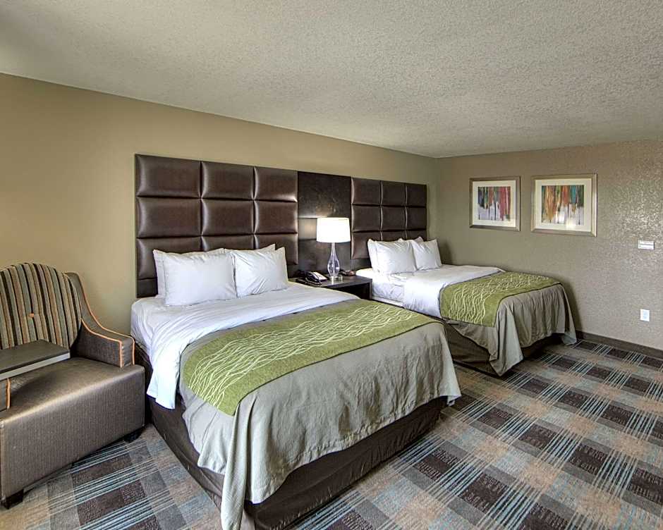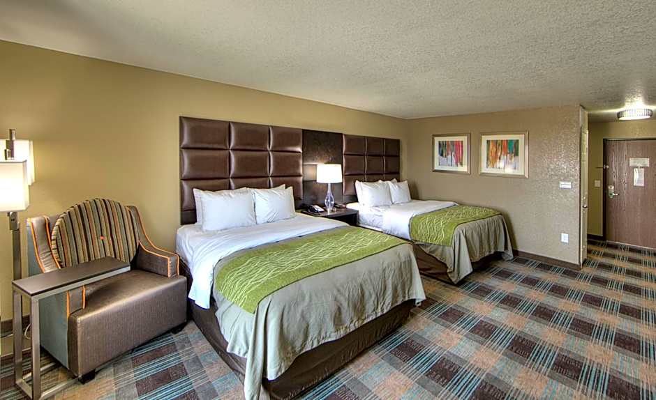 The Comfort Inn & Suites in White Settlement-Fort Worth West, TX offers a variety of rooms including King Suites with a sofa bed and spa bath, King Rooms, King Rooms with accessibility features, and Queen Rooms with two queen beds. All rooms are non-smoking and range in size from 398 sqft to 603 sqft. The accommodations vary in occupancy, accommodating between 2 to 4 adults and 1 to 3 children.
