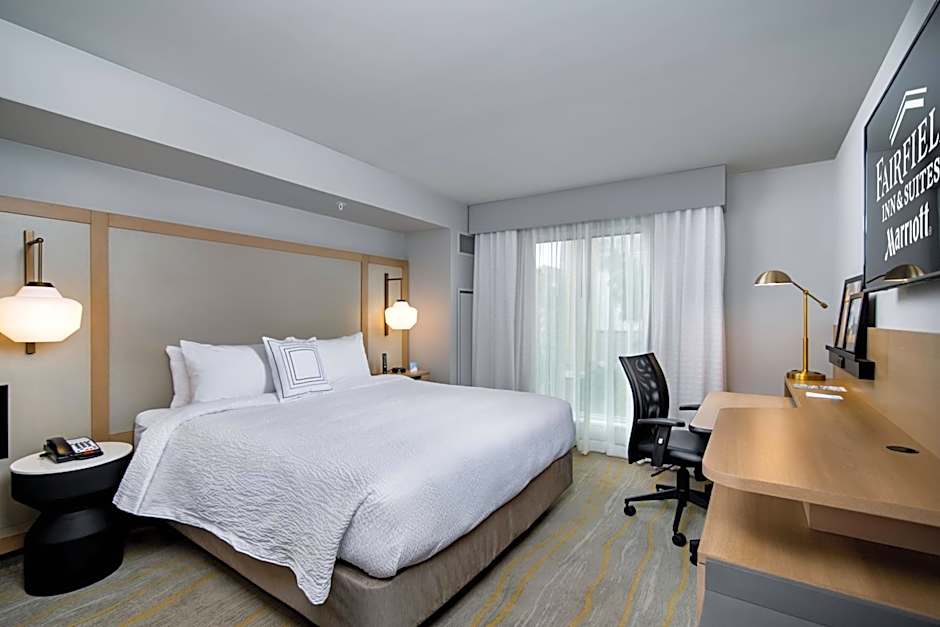 The Fairfield Inn & Suites Fort Worth Downtown/Convention Center offers a variety of rooms, including King Rooms with and without balconies, a Studio King with a balcony and sofa bed, a King Room with hearing accessibility, and Queen Rooms with two queen beds. All rooms are non-smoking and have an occupancy of 2 adults and 1 child, except for the Studio King and Queen Rooms which accommodate 4 adults and 3 children. The bed sizes range from a King size bed to two Queen size beds.