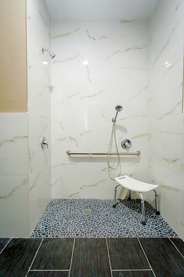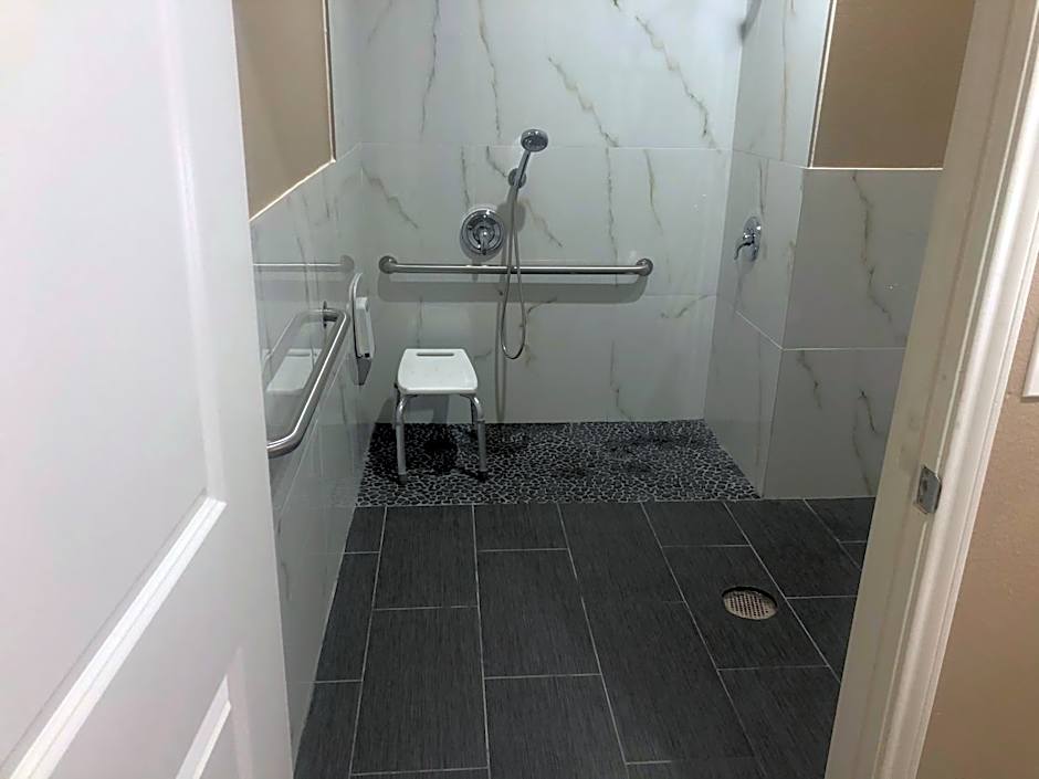 The double room's kitchenette, which features a refrigerator and a microwave, is available for cooking and storing food. This wheelchair accessible double room has air conditioning, a seating area with a flat-screen TV and a roll-in shower. The unit has 2 beds.