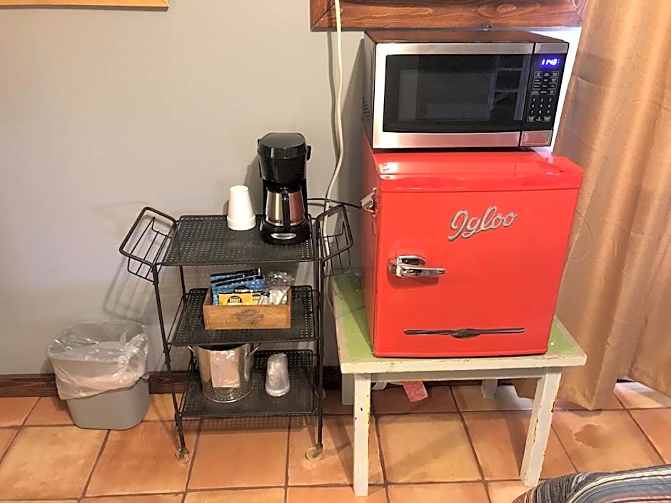 This room features a kitchenette with stovetop, microwave, refrigerator and coffee maker. A cable TV and private bathroom are included.