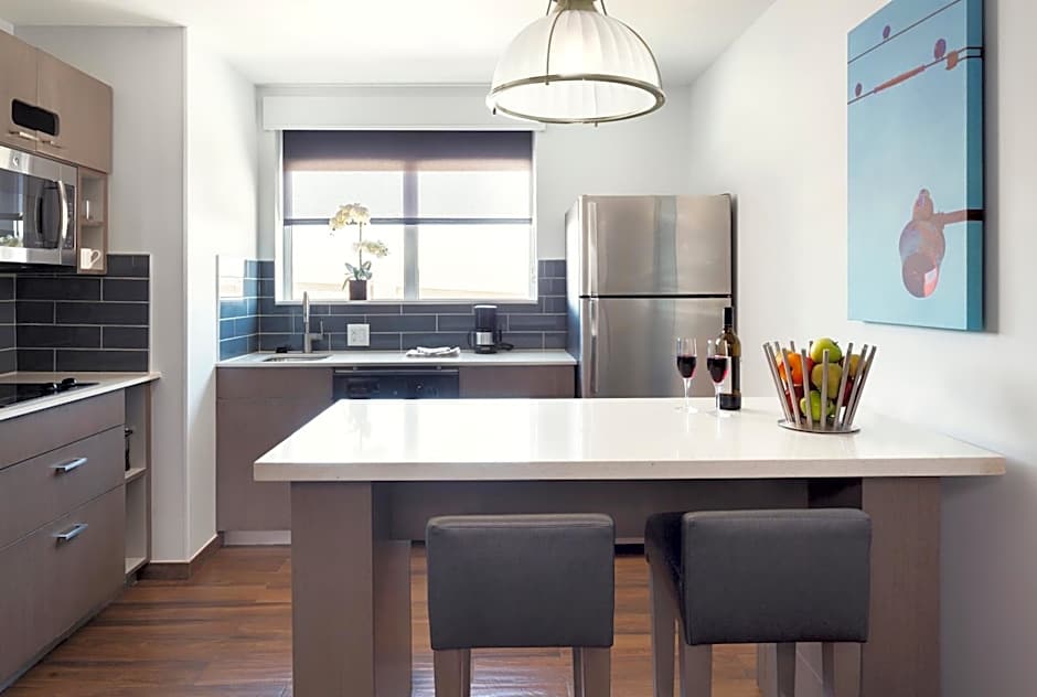 The breakfast was awesome and I loved that it was included. The staff was really nice and friendly, and even let us swim 30 minutes past pool closing which was a huge help as my kids were dying to swim and we got there just 10 minutes before the pool was supposed to close for the night. The room was clean, I loved all of the extra space and the kitchenette was stocked beyond my expectations. Although we didn't cook there, I did use the knives and cutting board along with some of the other dishes.