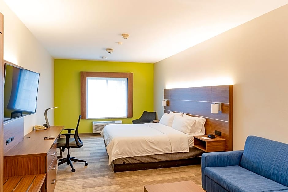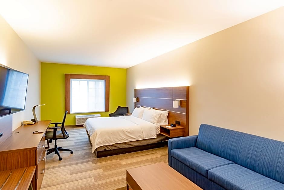 The Holiday Inn Express Hereford offers various types of rooms, including Studio Rooms, King Suites with Sofa Beds, Suites, Queen Rooms with Two Queen Beds, Executive Queen Suites, King Rooms with Mobility Access Roll-in Showers, Superior King Rooms, and Rooms Selected at Check-In. The occupancy ranges from 2 adults and 1 child up to 6 adults and 4 children. Smoking is not allowed in any of the rooms. Bed sizes include King, Queen, and Sofa Beds, depending on the room type. Room sizes range from 323 sqft to 398 sqft.