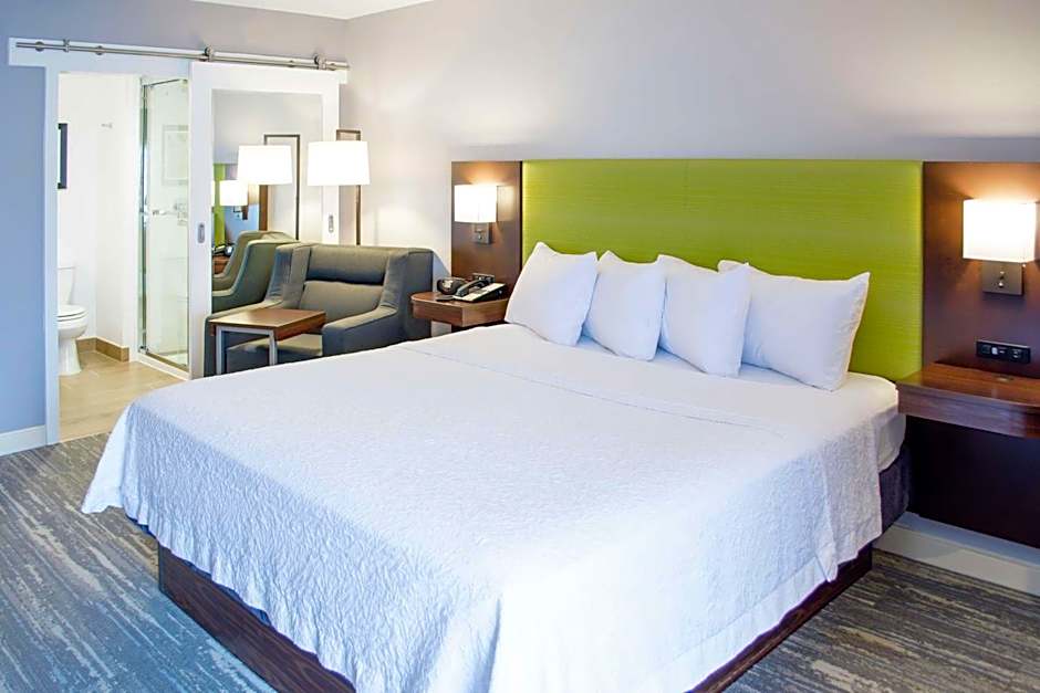 Easy chair, desk, 32-inch TV, free WiFi Relax in this king room with a clean and fresh Hampton bed®. Sink into the easy chair with ottoman and watch movies on the 32-inch HDTV. Surf the web with free WiFi. Catch up with work at the large desk with ergonomic chair. Refresh in the bathroom with a WaterPik showerhead and fluffy towels. This room also features a handy coffeemaker to help you feel at home.