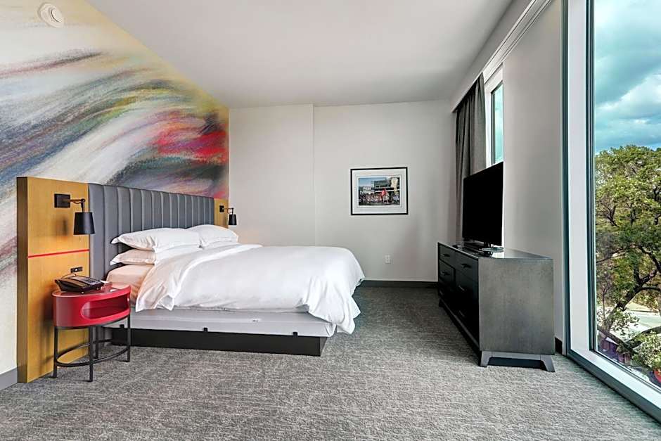 The Hilton University of Houston offers a range of room types including suites, family rooms, quadruple rooms, double rooms, and deluxe rooms. Smoking is not allowed in any of the rooms. The accommodations can vary, with some rooms accommodating up to 6 adults and 4 children, while others accommodate 2 adults and 1 child. The bed sizes range from King size to Queen size, and some rooms also have a sofa bed.