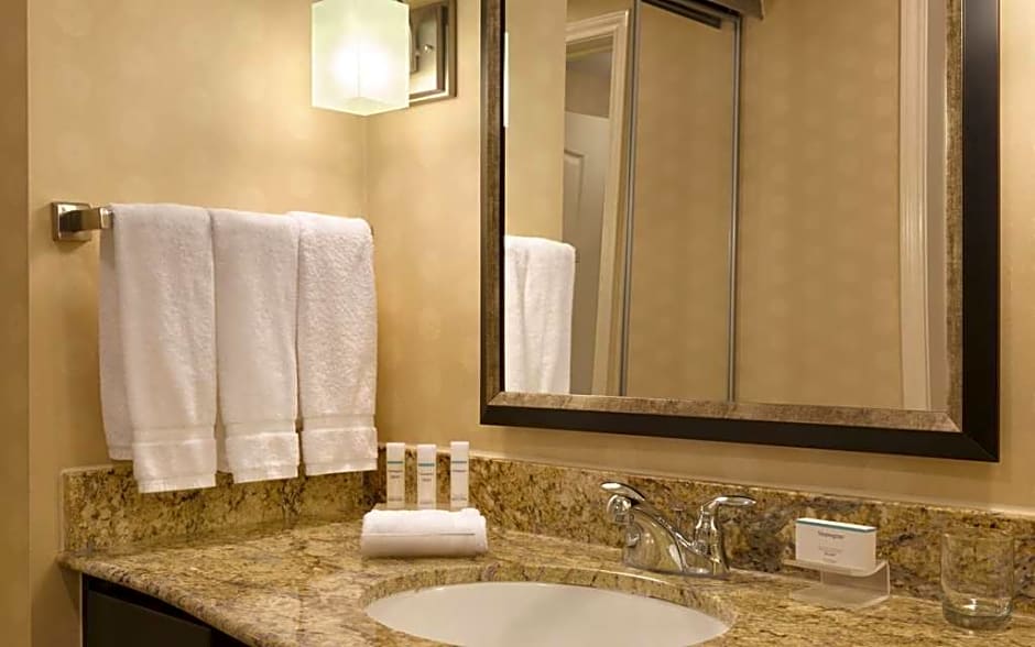 Kitchen, living/dining area, sofa bed, 2 TVs, complimentary internet access Relax in this two-room suite filled with all the comfortable features of home. The separate living area features a full-sized sofa bed, a comfortable chair and a TV with movie channels. The private bedroom provides ultimate relaxation with 2 queen-sized beds and an additional TV. Benefit from a fully equipped kitchen that includes a full-sized refrigerator, microwave, dishwasher, twin burner stove and utensils. A dining area off the kitchen can easily double as workspace. Keep in touch with complimentary internet access and stay on schedule with our MP3 alarm clock radio.