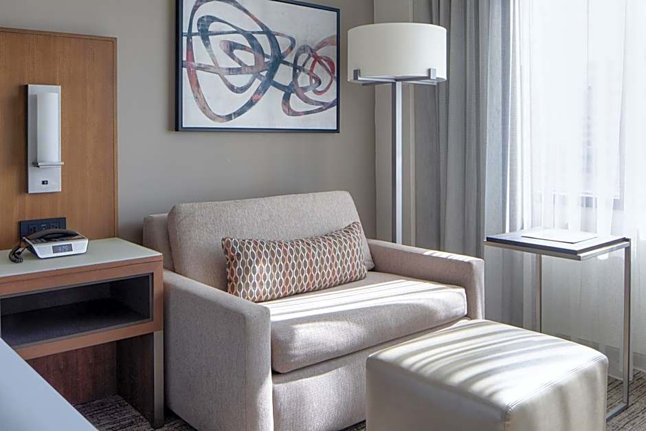 This room features mini refrigerator, 55'' flat screen TV,USB charging station and work desk with ergonomic chair. Air purifier which provides a hypoallergenic environment and allergy friendly bedding is also offered in this room.