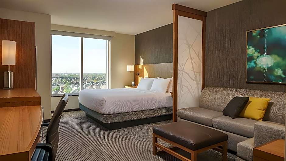 At the Hyatt Place Houston Galleria, there are several types of rooms available. These include King Rooms with a Sofa Bed on the high floor, One-Bedroom Suites with a Sofa Bed, and King Rooms with a Sofa Bed. The rooms are non-smoking and vary in size from 312 to 334 square feet. They can accommodate between 4 and 6 adults, as well as 3 to 4 children, depending on the room type. The bed options include King size beds, Queen size beds, and Sofa Beds.