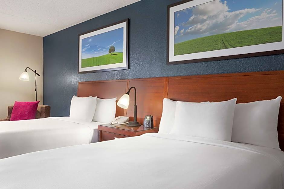 This mobility accessible standard room features two double beds, and a roll-in shower. Our spacious two double bed accessible rooms feature Sweet Dreams by DoubleTree Sleep Experience linens, duvet and bolster pillow, luscious bath amenities and an alarm clock with MP3 compatibility. Each of our guest rooms also features extended counter space/workdesk area, 32-inch flat-screen television, telephone and WiFi access. Other comforts of home include a coffeemaker, mini-fridge, microwave, hairdryer and iron/ironing board. Any corresponding photo may not reflect the specific accessible room type or room feature.