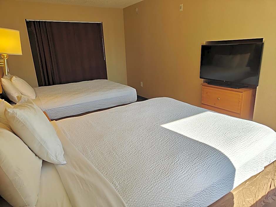 2 Queen Beds Mobility Accessible Room Studio Non-Smoking is 54 square feet and includes 2 queen-size beds 150-154 width plus satellite tv , hairdryer, and tea and coffee making facilities .