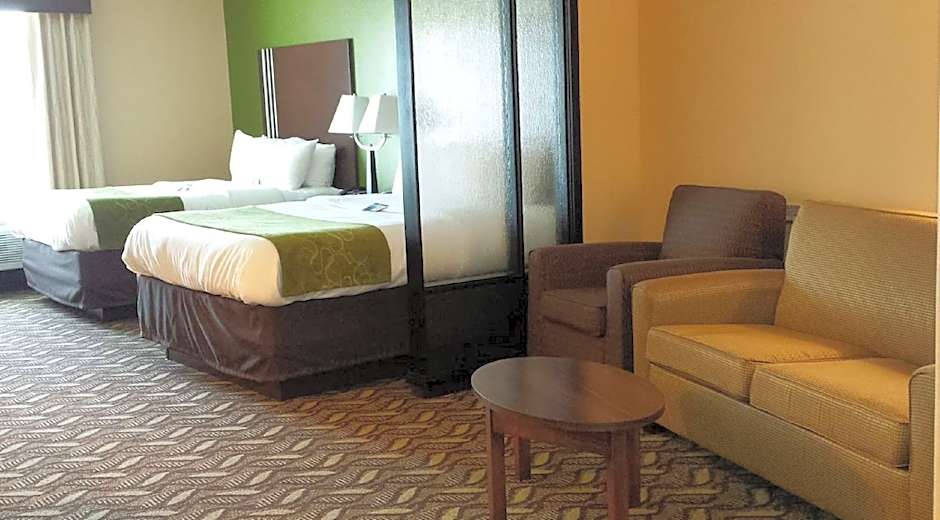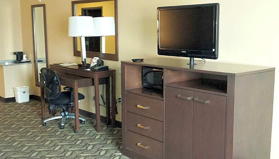 Free high-speed WiFi, Free breakfast, bathtub/shower combination, bathtub grab bars, adjustable hand-held shower wand, closed caption TV, sofa bed, couch, sitting area, mini-fridge, microwave, AC, coffee/tea maker, hair dryer, 43" LED TV, bathroom amenities, alarm clock, large desk, iron, ironing board