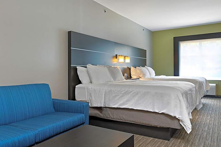 The Holiday Inn Express Hotel & Suites Kilgore North offers a variety of room options. They have King Rooms with Sofa Bed and Queen Rooms with Two Queen Beds, both non-smoking. The King Rooms with Roll in Shower and the Queen and King Suites are also non-smoking. The rooms accommodate different occupancy levels, ranging from 2 adults and 1 child to 6 adults and 4 children. The bed sizes include King, Queen, and Sofa Bed, ensuring comfort for guests.