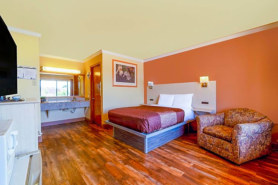 Spacious room with recliner; Pet friendly room and grounds. Clean.