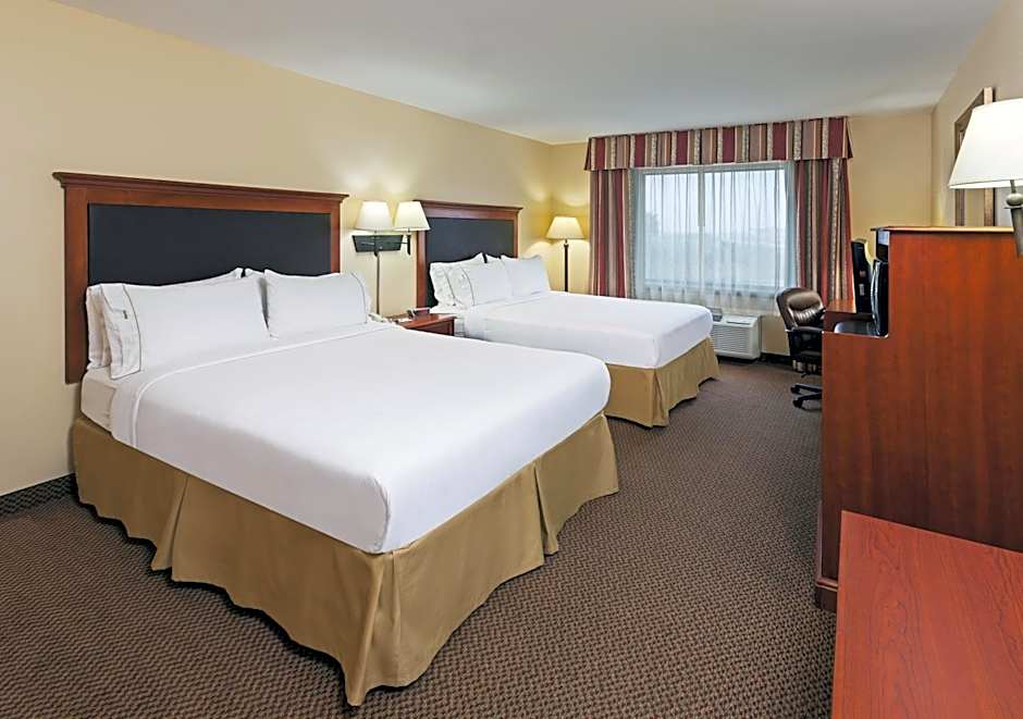 The Holiday Inn Express & Suites - Laredo-Event Center Area offers a variety of room types, including King Suites, King Rooms, Leisure King Rooms, King Studios, Queen Rooms with Two Queen Beds, and Standard Rooms. All rooms are non-smoking and have a room size of 301 sqft. The occupancy varies, accommodating 2 adults and 1 child or 4 adults and 3 children depending on the room type. The bed sizes range from King size to Queen size.