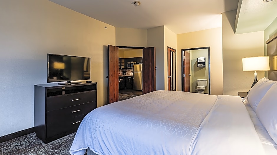 Staybridge Suites Laredo offers One-Bedroom King Suites, which are spacious suites with a size of 603 sqft. These suites do not allow smoking and feature a single King size bed. They can accommodate up to 4 adults and 3 children.