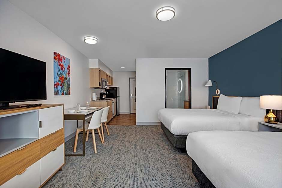 Room options mix space and value: Studio Suite, 2 Queen (431 sqft) with two queen beds, Studio, King (355 sqft) with a king bed, and Suite, 1 Bedroom (904 sqft) with a king bed, offering diverse setups for solo travelers, couples, or families.