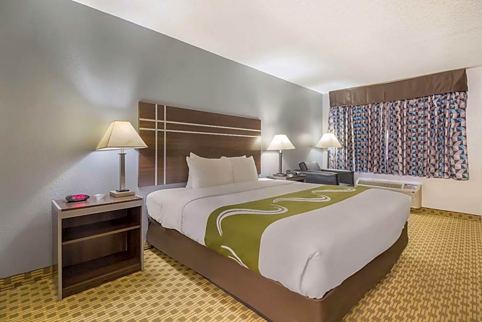 The Quality Inn offers various types of rooms including King Rooms, Efficiency Rooms with Two Double Beds, and Double Rooms with Two Double Beds. There are both smoking and non-smoking options available. The rooms can accommodate 2 adults and 1 child or 4 adults and 3 children. The bed sizes include King size and Double beds. The room sizes are 205 sqft.