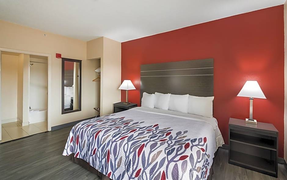 The Red Roof Inn & Suites Austin East - Manor offers a variety of rooms, including Superior Queen Rooms with Two Queen Beds Non Smoking that can accommodate up to 4 adults and 3 children, Superior King Rooms Non Smoking that can accommodate 2 adults and 1 child, and Superior King Rooms and Superior Queen Rooms with Two Queen Beds that are disability accessible and have roll-in showers. All rooms are 280 sqft in size and smoking is not allowed. The Suite King Room is also available for 2 adults and 1 child.