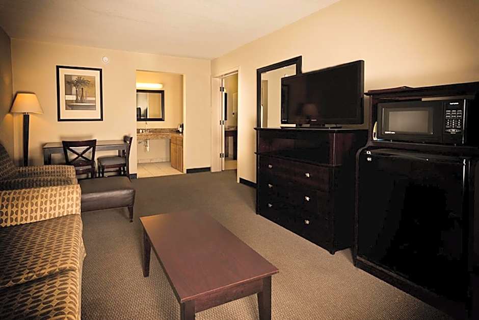 A refrigerator, microwave, and 40-inch flat-panel TV are offered in this room.