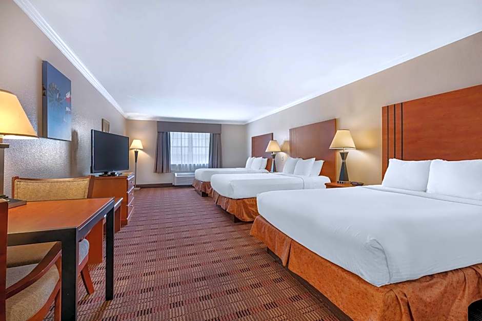 The Best Western Clubhouse Inn & Suites offers a variety of room types, including Queen Rooms with Two Queen Beds, King Rooms with Two King Beds, King Suites with Sofa Bed, King Suites with Sofa Bed and Roll-In Shower (Disability Accessible), Queen Rooms with Three Queen Beds, King Rooms with Sofa Bed, Queen Rooms with Three Queen Beds (Disability Accessible), King Rooms with Spa Bath, Queen Suites with Two Queen Beds, and King Rooms with Spa Bath (Disability Accessible). All rooms are non-smoking and have different occupancy capacities and bed sizes.
