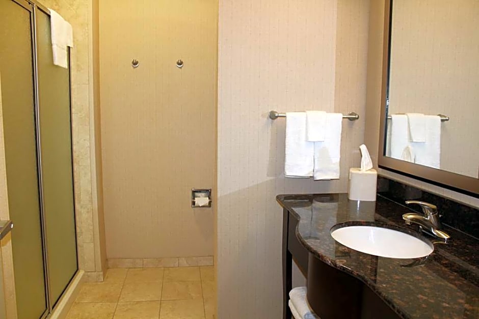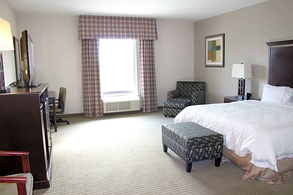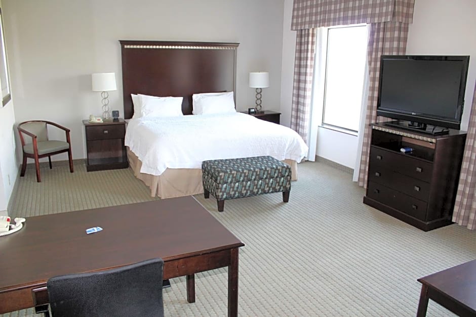 Sofa bed, free WiFi, 42-inch TV, work desk, coffeemaker, shower Stretch out in this spacious non-smoking studio suite which features our king-sized clean and fresh Hampton bed®, a convenient sofa bed, and a 42-inch LCD TV. Catch up on work at the large desk, or surf the web with free WiFi access. Refresh in the bathroom which has a WaterPik showerhead and curved shower rod that allows more light and space in the shower.