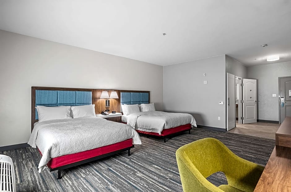 This mobility and hearing accessible, two-room, non-smoking suite features two queen-sized beds, and an accessible bath tub. The suite also has a visual alarm and notification devices for the doorbell or door knock and incoming phone calls. The room features include a microwave, refrigerator, comfortable soft seating, a HDTV, and easy to operate alarm clock/radio. The free WiFi access will help you stay connected while on the road. If you prefer not to work at the desk, you can use the lapdesk instead. You'll also enjoy the convenience of having a coffeemaker with tea service and iron/ironing board in your room. Any corresponding photo may not reflect the specific accessible room type or room feature.