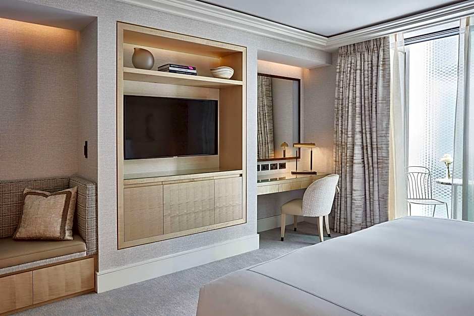 The suite features air conditioning, a tea and coffee maker, a seating area and a TV with cable channels.