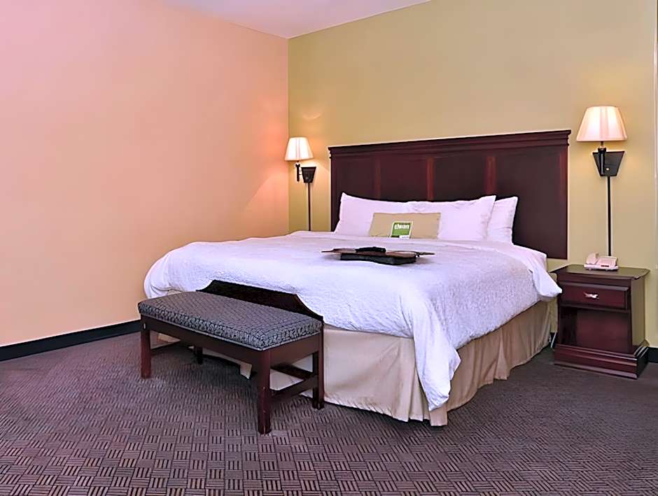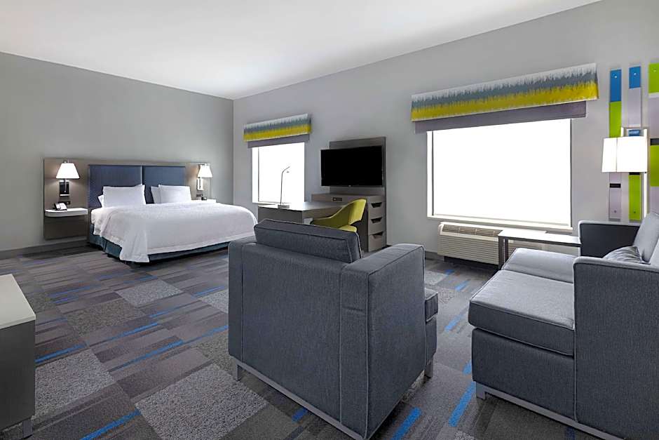 HDTV, sofa bed, work desk, coffeemaker, free WiFi access This spacious studio suite offers one king-sized clean and fresh Hampton bed®, plus a comfortable sofa bed to sleep an extra guest. Stay entertained with a variety of movies and channels on the HDTV. Business amenities include a large work desk and free WiFi access. Refresh in the bathroom with a WaterPik showerhead and fluffy towels. This room also features a handy coffeemaker to help you feel at home.