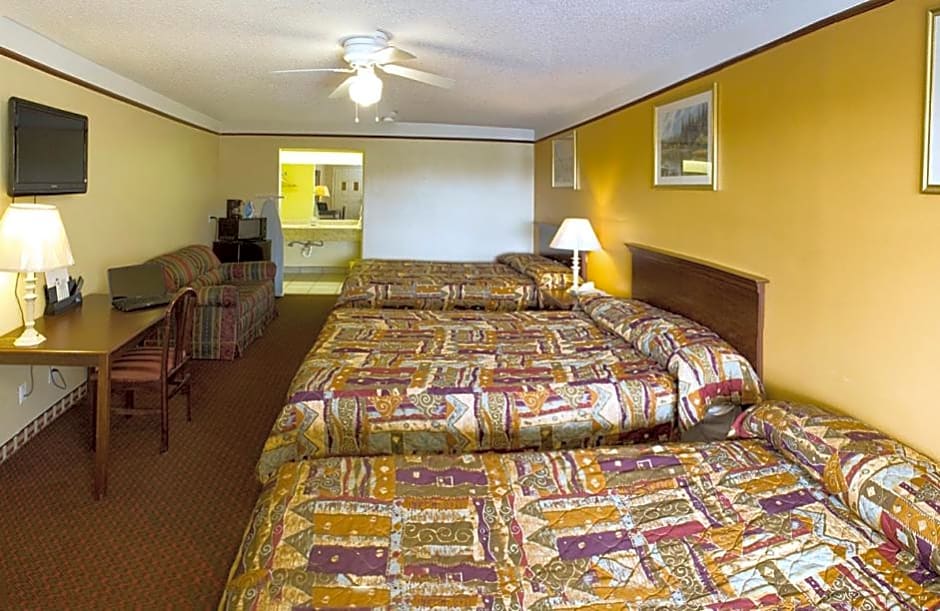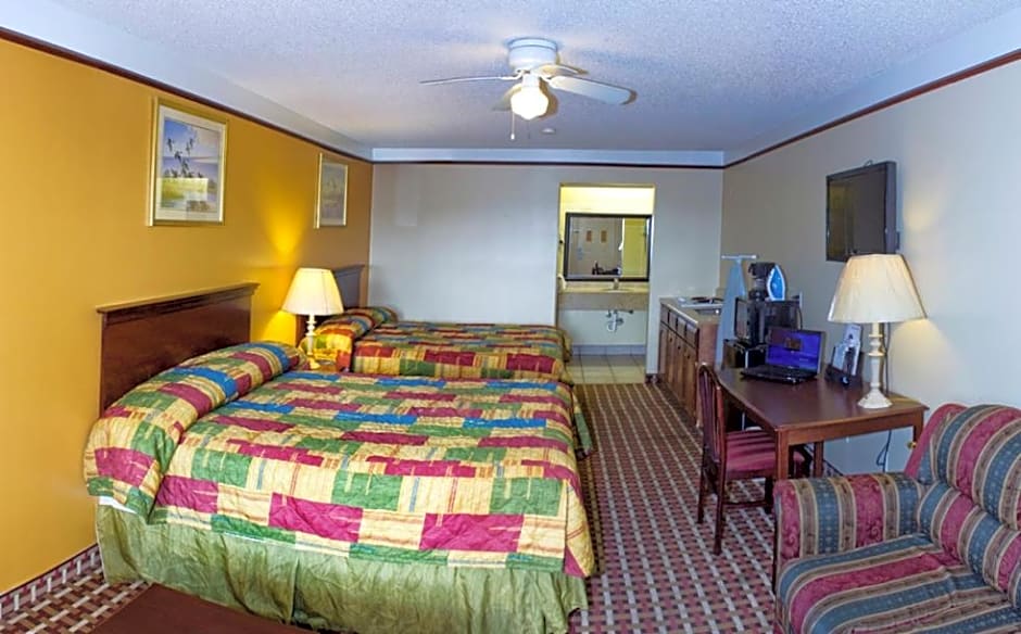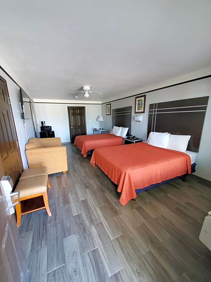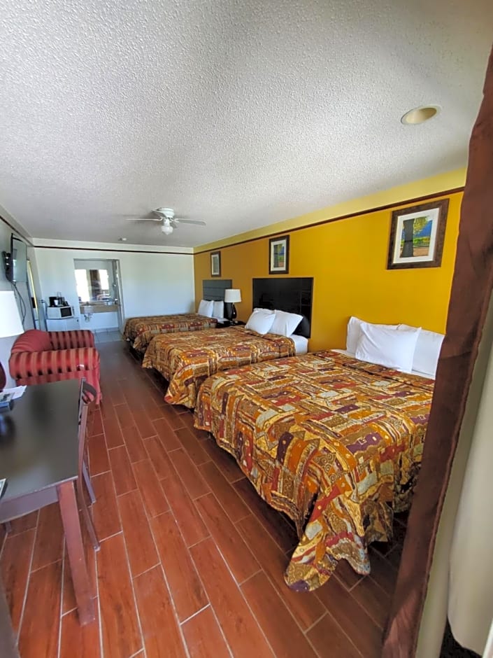 The Deluxe Inn and Suites offers a variety of room types. The King Room has a double occupancy and features a king size bed, while the Queen Room with Three Queen Beds can accommodate up to six adults with three queen size beds. The Standard Queen Room and the Queen Room with Two Queen Beds both accommodate two and four adults respectively, with one or two queen size beds. Smoking is not allowed in any of these rooms.