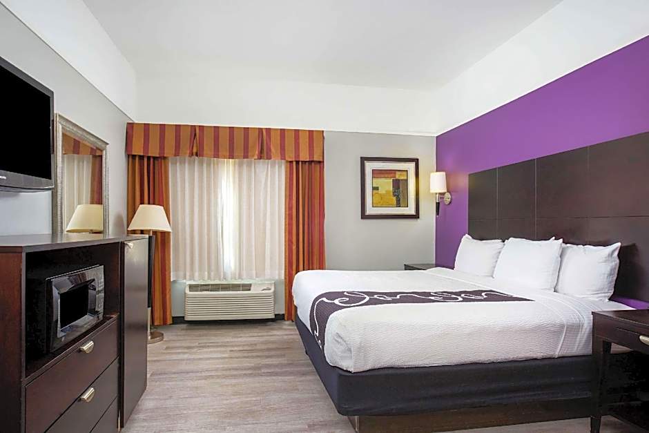 What are the room types available at La Quinta Inn Suites by Wyndham Raymondville Harlingen?