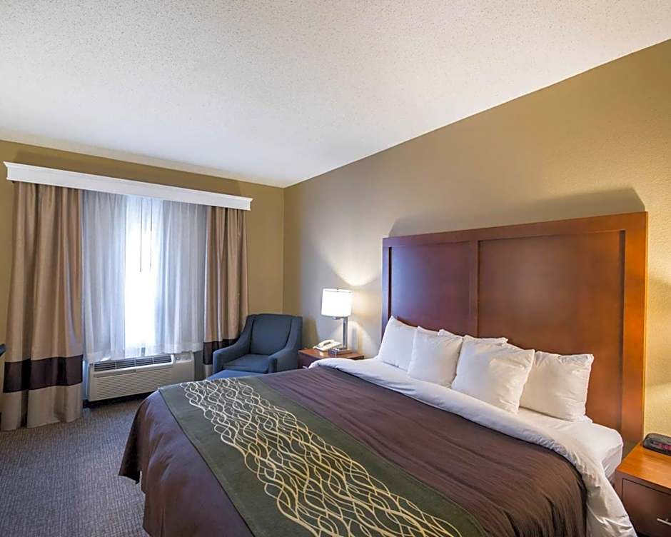 Welcome to our King Room - Accessible/Non-Smoking, a spacious and stylish haven perfect for a couple or small family. With its generous 301 sqft size, modern amenities such as a private bathroom, bathtub, and a convenient microwave and coffee machine, your stay will be both comfortable and enjoyable. Unwind in the cozy King size bed while watching your favorite shows on the flat-screen TV, and rest easy knowing that smoking is not allowed in this room.