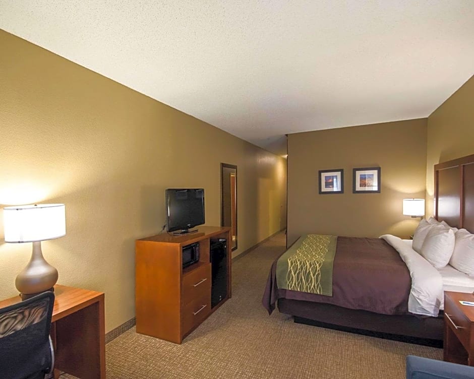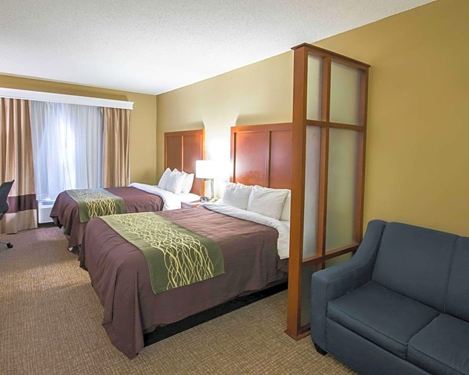 The Comfort Inn Red Oak offers a variety of room types including Queen Rooms with Two Queen Beds, King Rooms, and Suites. All rooms are non-smoking and have a room size of 301 sqft. The Queen Rooms with Two Queen Beds and King Rooms accommodate 4 adults and 3 children, while the Suites accommodate either 2 adults and 1 child, 3 adults and 2 children, or 4 adults and 3 children. The King Suite with Sofa Bed has an additional sofa bed.