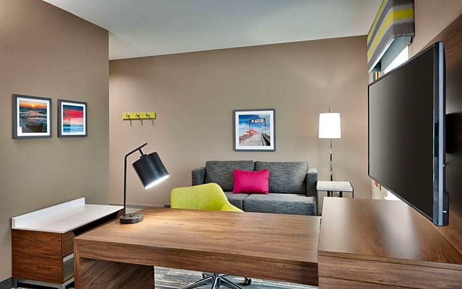 Sofa bed, free WiFi, 42-inch TV, work desk, mini-refrigerator, microwave, coffeemaker, shower This spacious non-smoking studio suite features a king-sized clean and fresh Hampton bed®, a convenient sofa bed, and a 42-inch HDTV. Catch up on work at the large desk, or surf the web with free WiFi access. Refresh in the bathroom which has a WaterPik showerhead and curved shower rod that allows more light and space in the shower. This suite also has a mini-refrigerator and microwave.