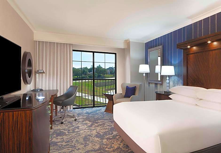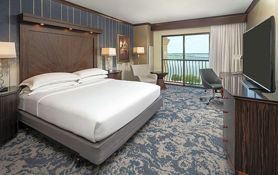 The Hilton Dallas/Rockwall Lakefront Hotel offers a variety of room types including King Rooms, Queen Rooms, and Suites. All rooms are non-smoking and range in size from 377 sqft to 743 sqft. The rooms can accommodate between 2-4 adults and 1-3 children, with bed options including King size beds and Queen size beds.