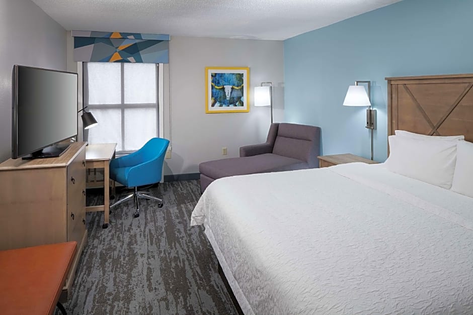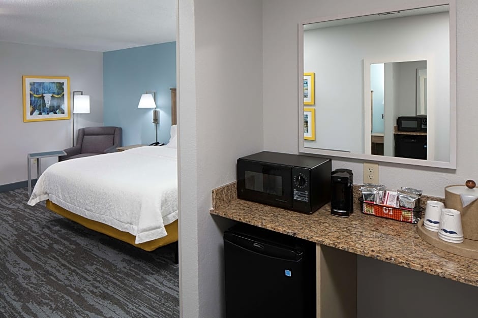 32-inch HDTV, sofa bed, work desk, coffeemaker, free WiFi access Enjoy extra space and comfort in this guest room which offers one king-sized clean and fresh Hampton bed®, plus a comfortable sofa bed to sleep an extra guest. Stay entertained with a variety of movies and HD channels on the 32-inch TV. Business amenities include a large work desk and free WiFi access. Refresh in the bathroom with a WaterPik showerhead and fluffy towels. This room also features a handy coffeemaker to help you feel at home.
