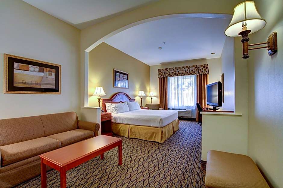 The Holiday Inn Express San Angelo offers a variety of room types including suites and double rooms. All rooms are non-smoking and have a room size of 323 sqft. The occupancy varies, accommodating either 2 adults and 1 child or 4 adults and 3 children, depending on the room type. The bed sizes range from Queen to King, with some rooms also including a sofa bed.