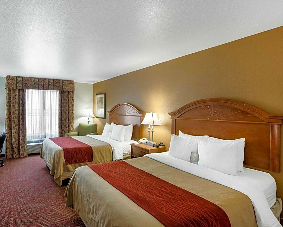 The Comfort Inn & Suites Near Medical Center offers various types of rooms. These include Queen Rooms with Two Queen Beds (non-smoking), King Rooms (non-smoking), Queen Suites with Two Queen Beds (non-smoking), and King Suites (non-smoking). The bed sizes range from Queen to King, and the occupancy ranges from 2 adults and 1 child to 6 adults and 4 children. Smoking is not allowed in any of the rooms.