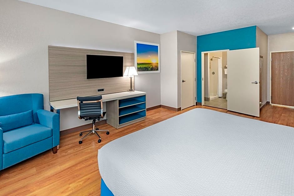What are the room types available at Days Inn & Suites by Wyndham San Antonio near Frost Bank Center?