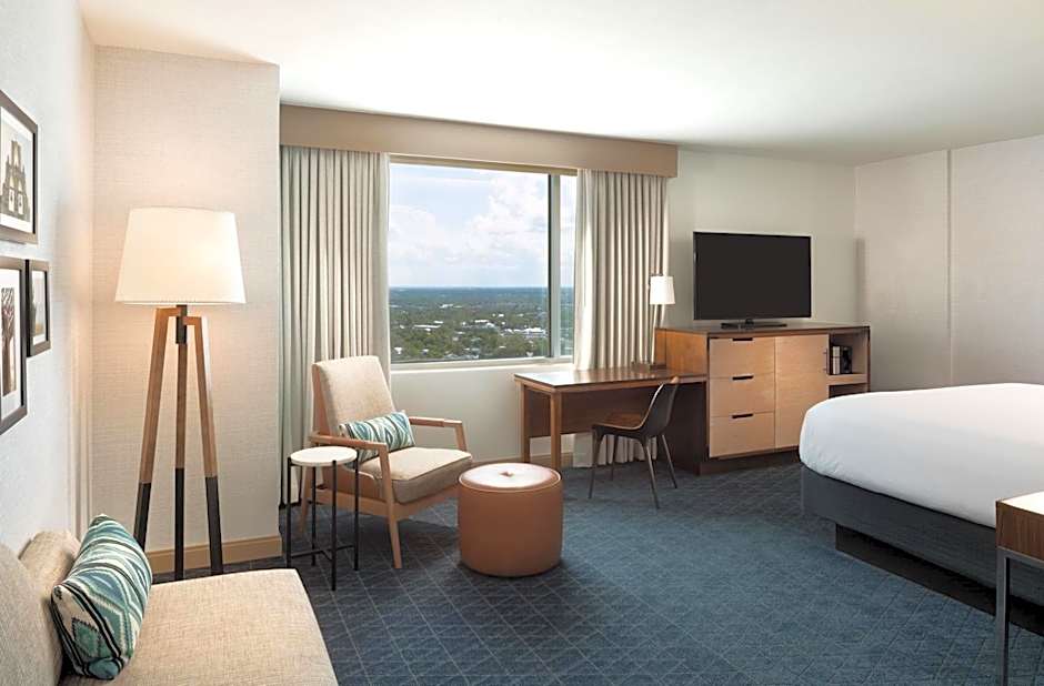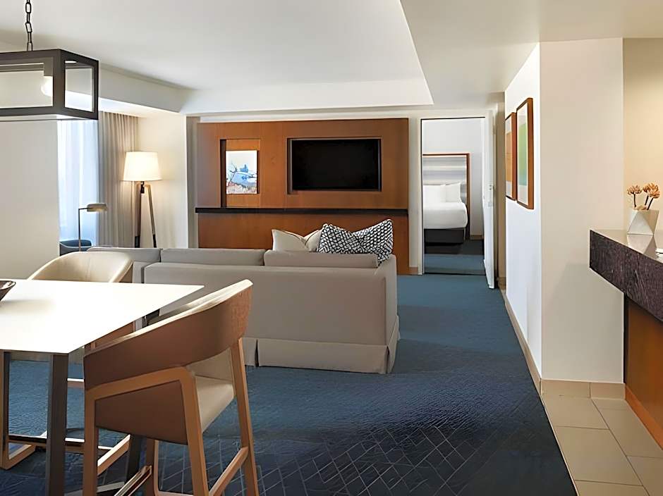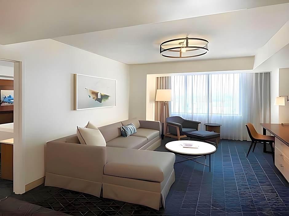 This room includes a 55-inch flat-screen TV, coffee maker and refrigerator. It features access to the concierge-staffed Club Lounge offering free continental breakfast and evening hors d’oeuvres.