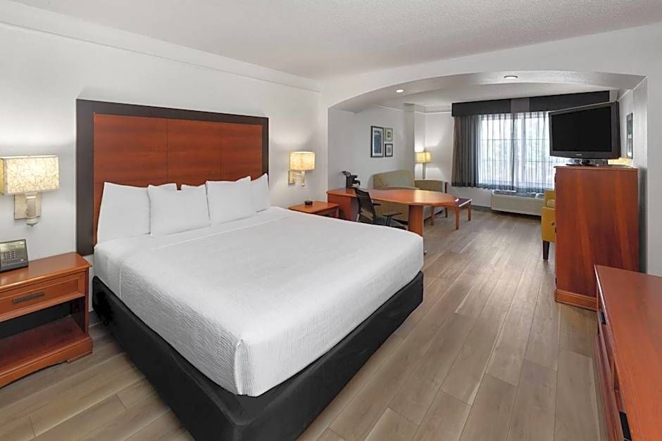 This king suite has a microwave, refrigerator, and wet bar. A sofa bed in the living room is also available. This room includes access to the complimentary hot breakfast buffet