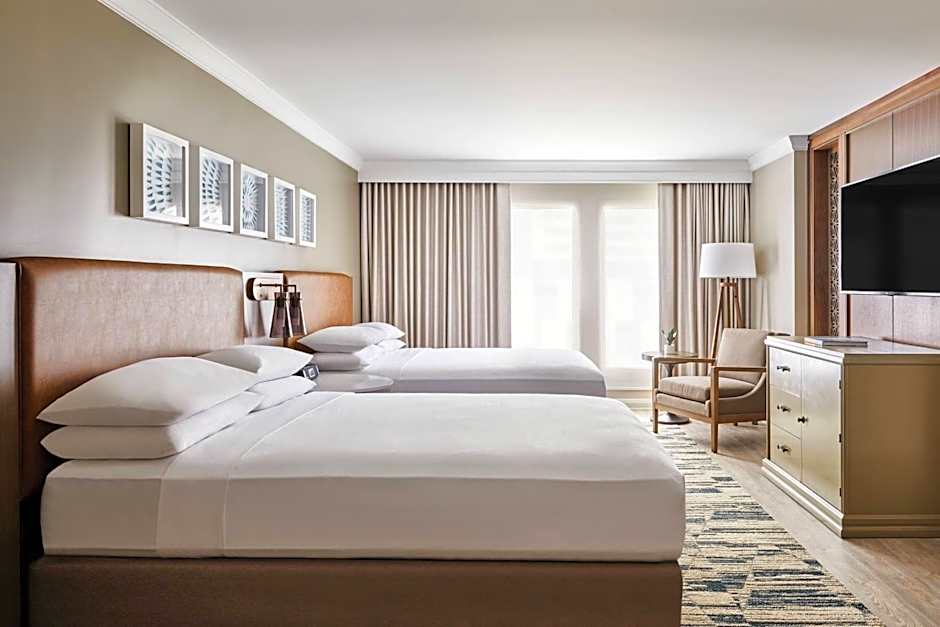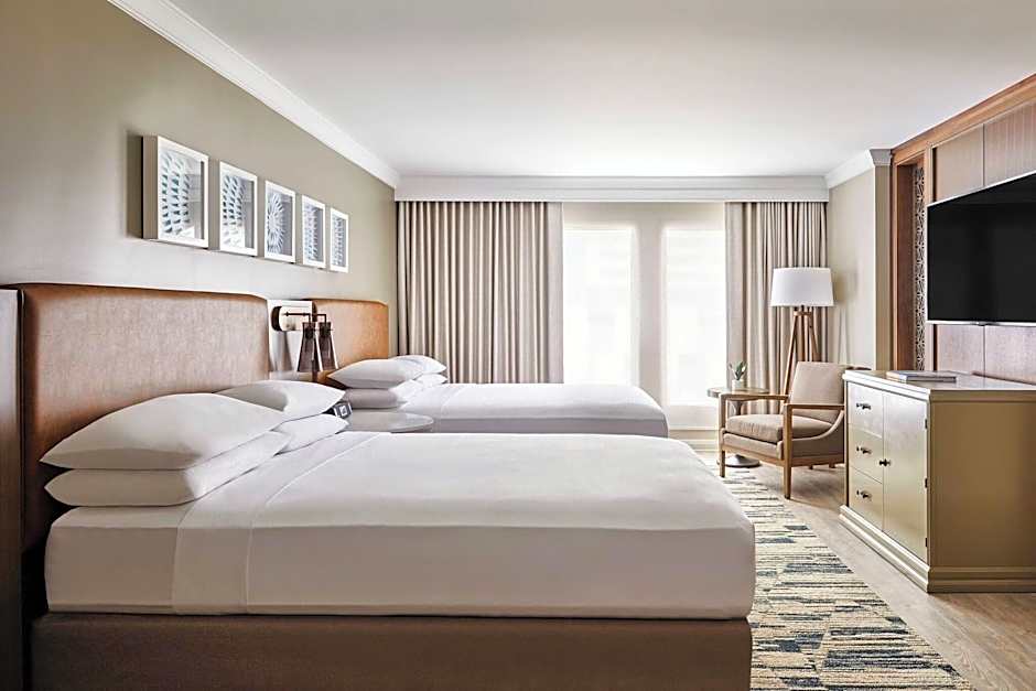 The San Antonio Marriott Rivercenter on the River Walk offers a variety of rooms including Guest rooms with 2 Queen beds, King or Double rooms, Queen rooms with 2 Queen beds and City View, and Double rooms with 2 Double beds. All rooms have a size of 291 sqft, except for the Guest rooms with 2 Queen beds which are 431 sqft. Smoking is not allowed in any of the rooms. The rooms can accommodate varying numbers of adults and children, ranging from 2 adults and 2 children to 5 adults and 4 children.