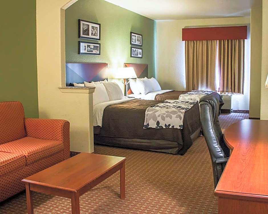 What are the room types available at Sleep Inn & Suites at Six Flags?