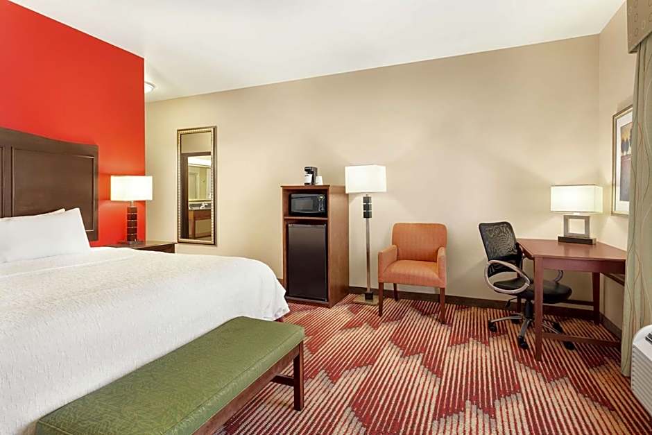 The Hampton Inn Sulphur Springs offers a variety of room types including King Studios, King Rooms with Sofa Beds, and Queen Rooms with Two Queen Beds. All rooms are non-smoking and range in size from 258 to 420 square feet. Occupancy varies from triple to quadruple, accommodating 3 to 5 adults and 2 to 4 children. Bed sizes include King and Queen beds, with some rooms also featuring a sofa bed.