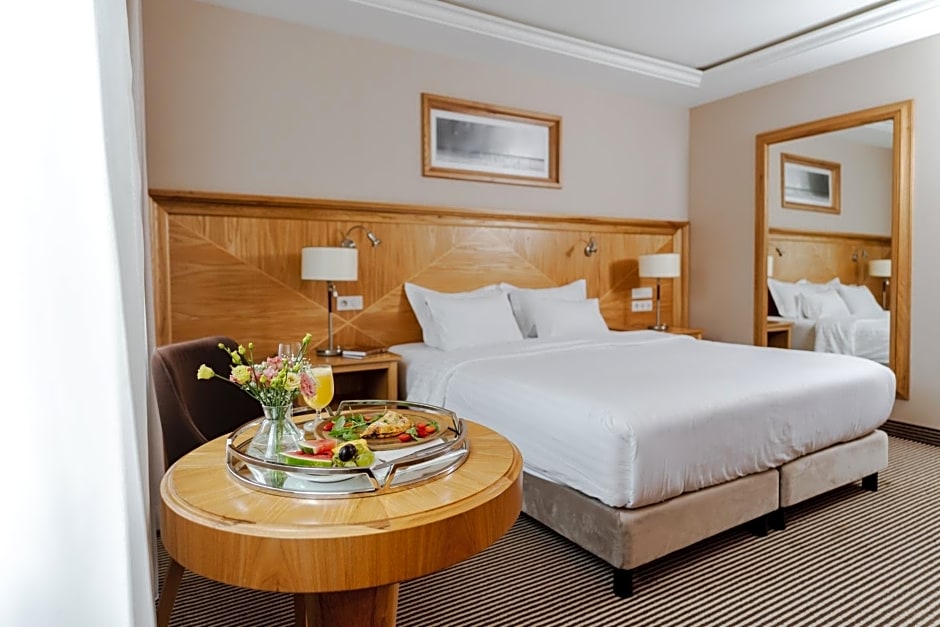 Room configurations cater to families and groups, including a Suite with a King bed and sofa bed, and a Suite with two Queen beds and a sofa bed, each providing flexible space for together time. Other options include a Deluxe room and Suite variants with different bedding arrangements, such as Queen beds with sofa beds. Each of these suites offers generous living space, designed to make it easy to unwind after miles of sightseeing or meetings.